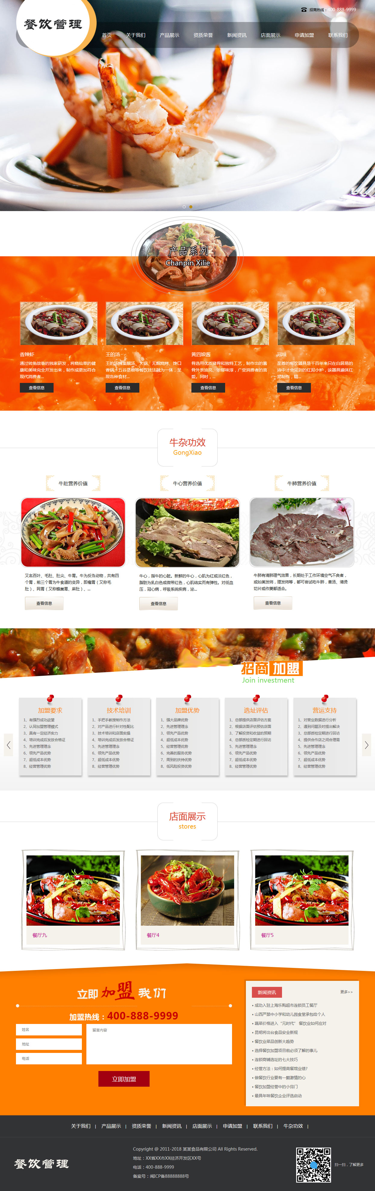 响应式餐饮牛杂小吃类织梦网站模板该模板属于企业通用、HTML5响应式、餐饮小吃、食品、牛杂管理类企业使用,一款适用性很强的模板,基本可以适合各行业的企业网站,响应式自适应各种移动设备,同一个后台,数据即时同步,简单适用,页面简洁简单,容易管理,DEDE内核都可以使用;附带测试数据!